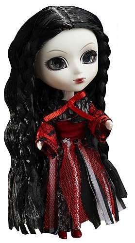 “Gosick” is the Japanese way of saying Gothic. This doll is designed and made in Korea by the Pullip company. She wears a black Victorian style gown with ruffled hem and white lacy sleeves, a black flowery bonnet, and copious amounts of petticoats. Her long blonde hair isn’t very gothic, but fits in with Gothic Lolita styles.