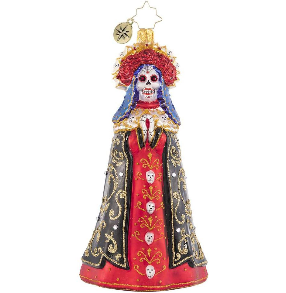 Here is the Christopher Radko “Lady of Shadows” ornament. It of course was part of their Halloween-season “Dia de Muertos” ornament line, but I want to hang one on my Christmas tree during December, too.