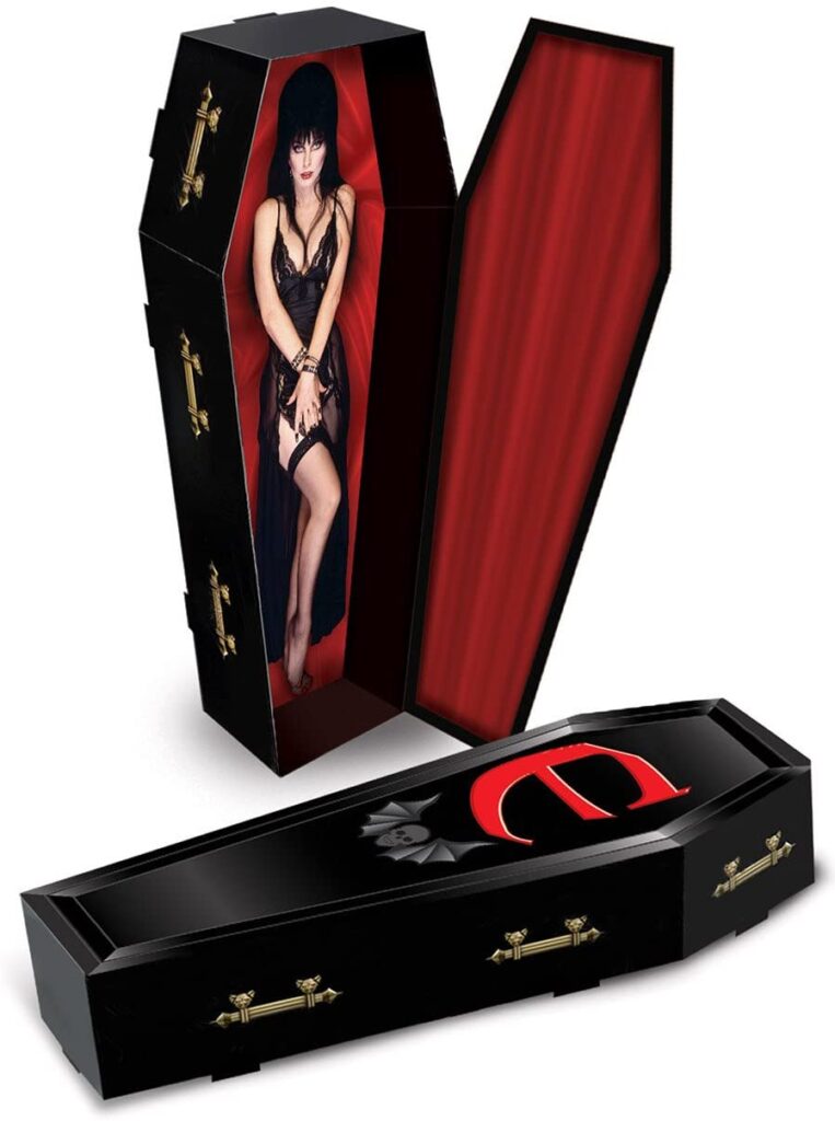 This is the Beistle Elvira coffin centerpiece. The package comes with two, so you could put one on your mantel and use one on your coffee table!