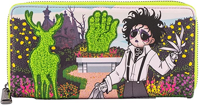 There’s also a matching Loungefly Edward Scissorhands “Topiary” wallet featuring Edward’s sad eyes and a couple of his artistic plant creations.