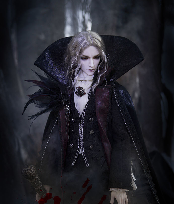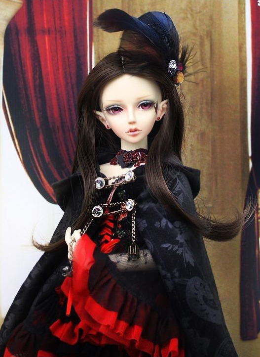 A little different take on the typical vampire style, the Kana Vampire BJD Doll. She is more from the Victorian period fitting in with society. This 58cm tall dollfie has some of those most gorgeous eyes I’ve seen. They are a pale violet color and have an eerie glow.