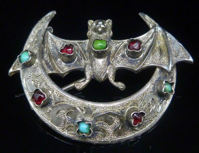 Intriguing Antique Victorian Bat Brooch This stunning antique Victorian bat brooch is from around 1880. It’s made from sterling silver, set with garnets and turquoises. A perfect adornment for your ballgown or Victorian attire. Post Views: 923 Share this: Click to share on Facebook (Opens in new window) Facebook Click to email a link to a friend (Opens in new window) Email Click to share on Reddit (Opens in new window) Reddit Click to share on Pinterest (Opens in new window) Pinterest Click to share on Threads (Opens in new window) Threads Like this:Like Loading... Related Previous Article Interesting Gothic Men's Bat Coat Next Article Adorable New Frankenstein Board Book for Goth Babies
