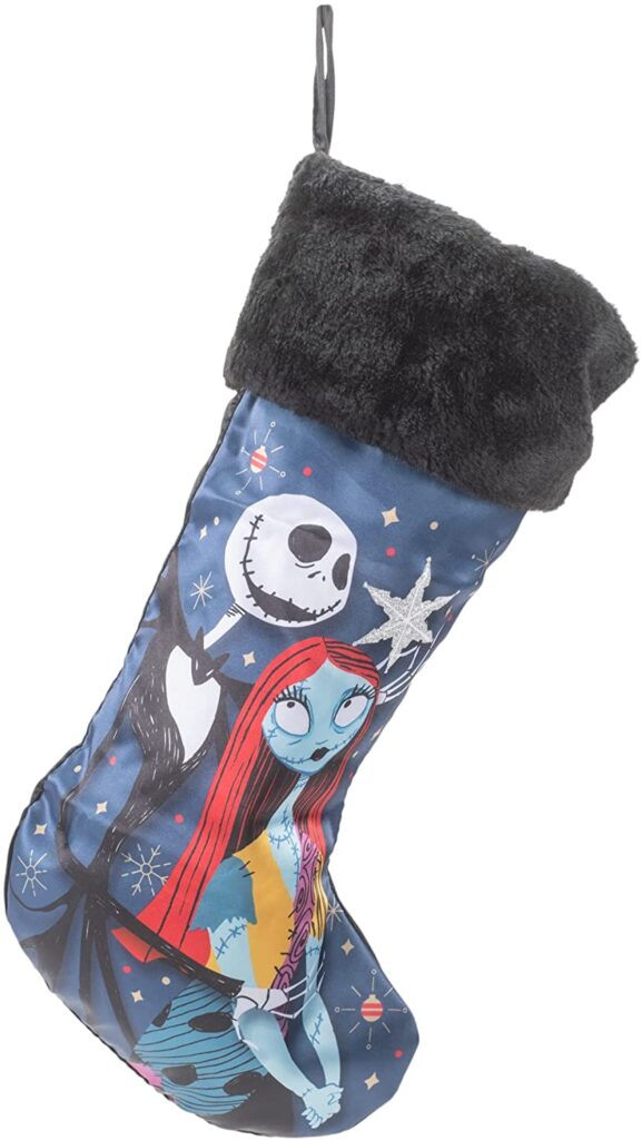 Take a look at this officially licensed Nightmare Before Christmas stocking from Kurt Adler (via Amazon; affiliate link). The front shows Jack and Sally, and the back is a black plush faux fur.